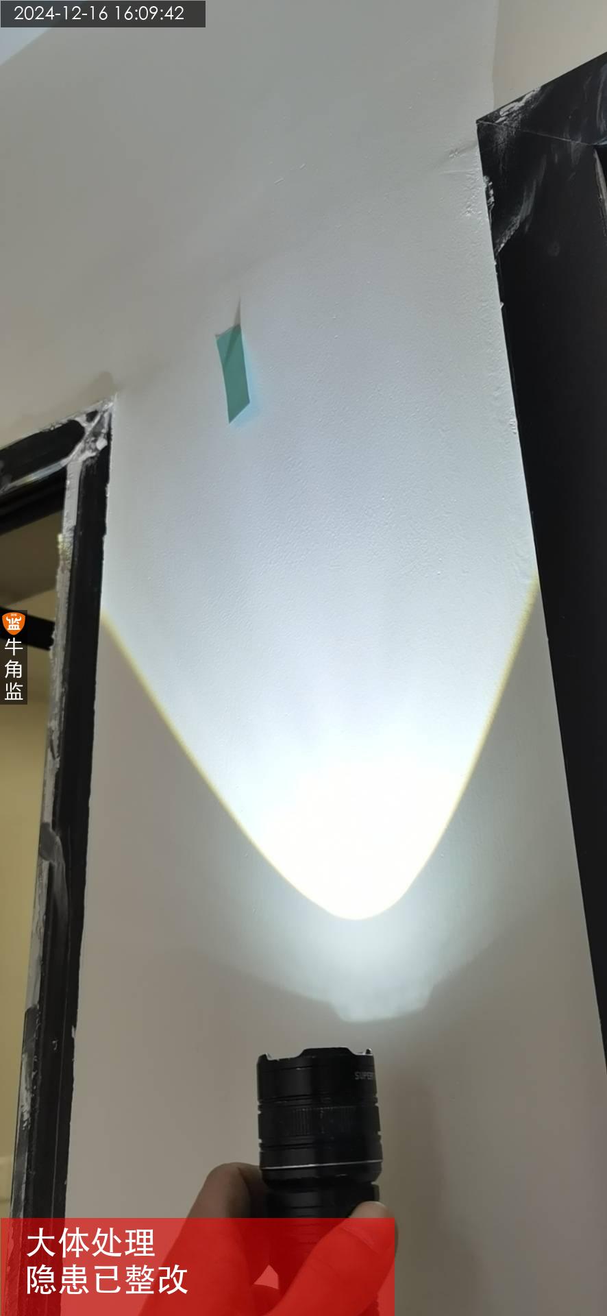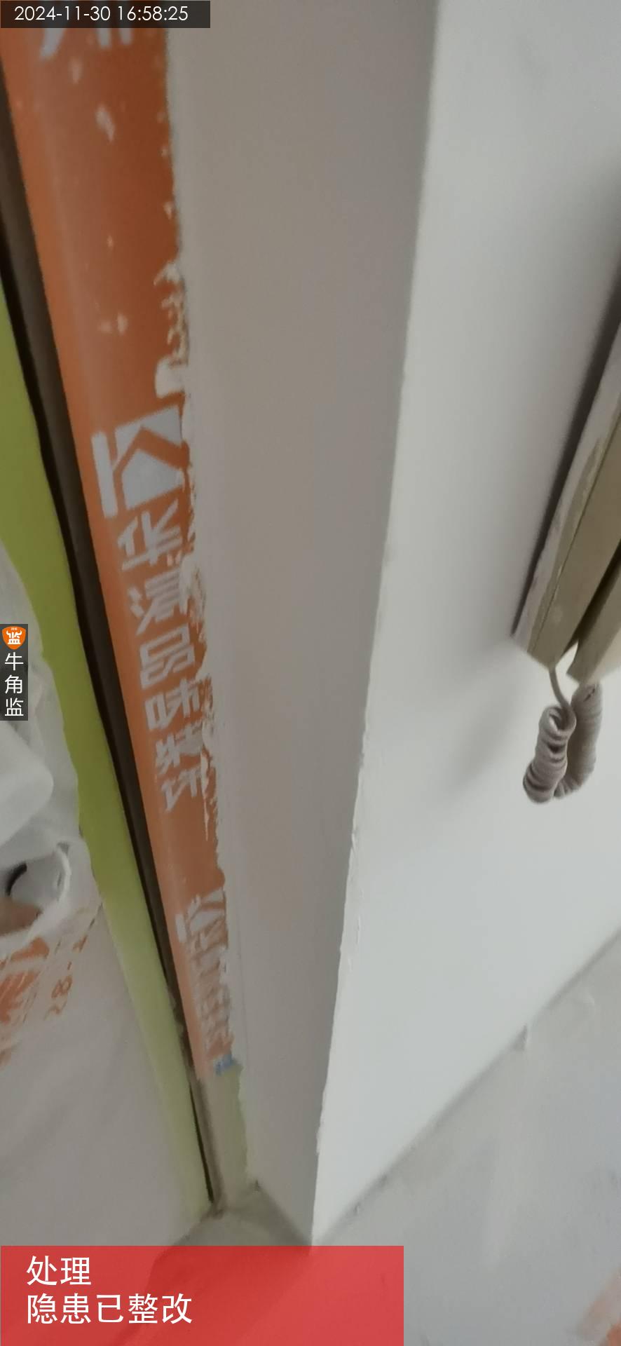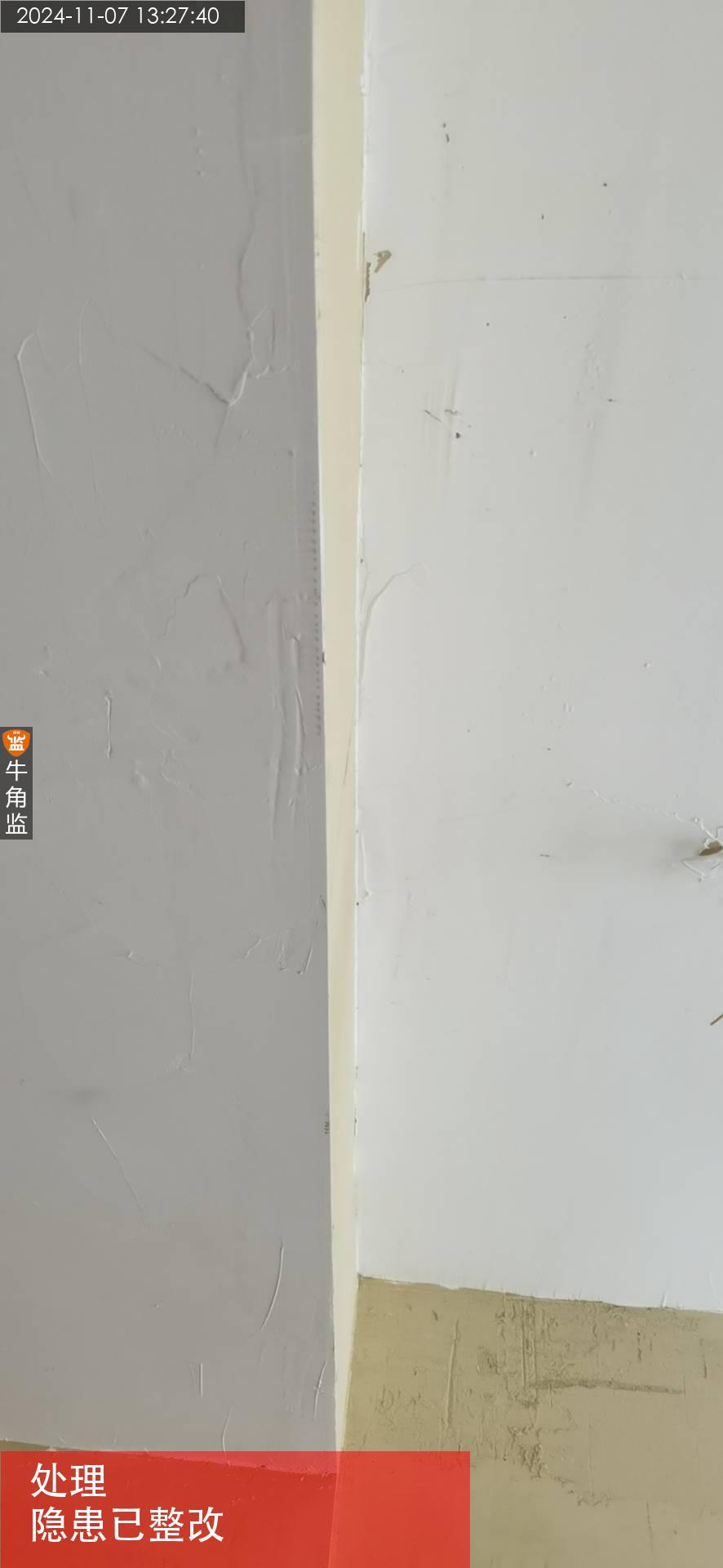 2、墙面墙角局部有些磕破的,以及门边缝隙明显。 ;整改建议:需要修补腻子,打磨平,补刷油漆进行修复处理。