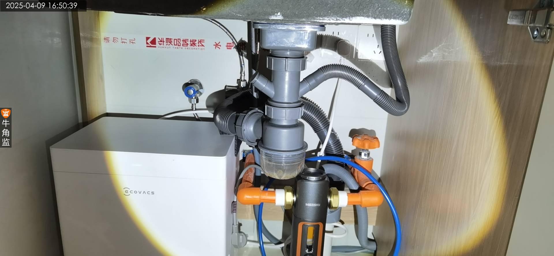 3、洗手盆下水接管有些渗漏,需要调整密封拧紧处理。