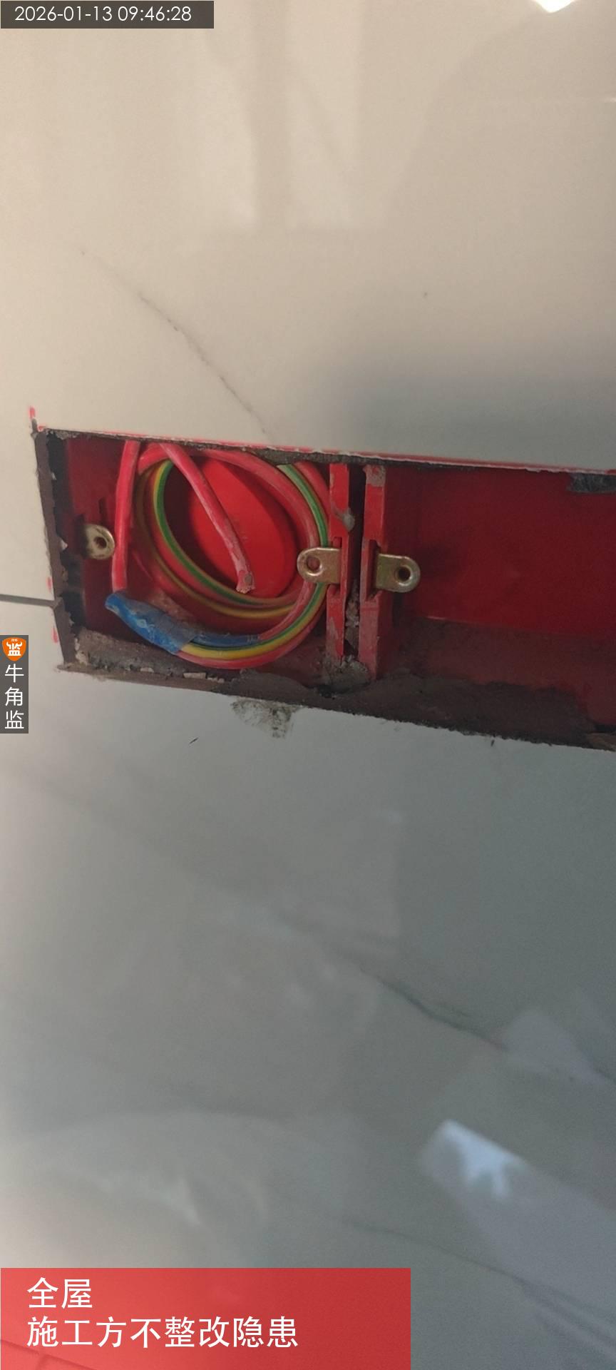 1、现场阳台位置强电存在走地情况,需注意进行处理;整改建议:阳台厨房卫生间强电走地需做好密封处理,接口位置,做好封闭,避免电线泡水
