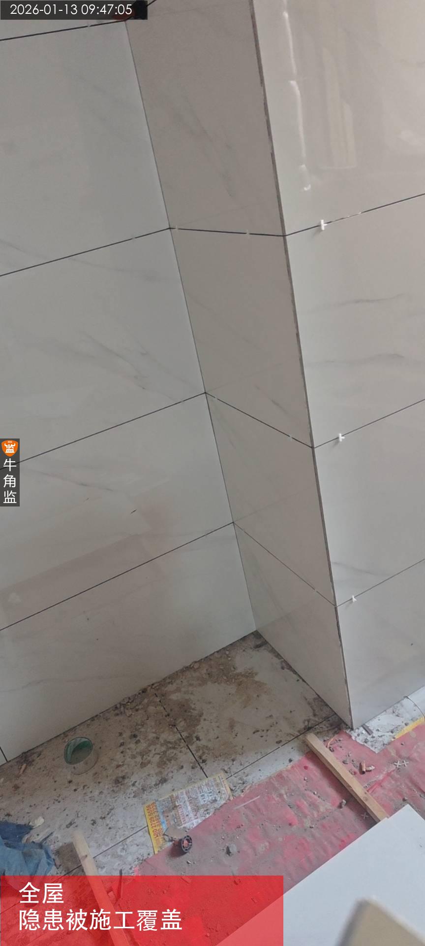 17 地漏离墙边10cm以上,地漏不可放置在瓷砖跨缝处。