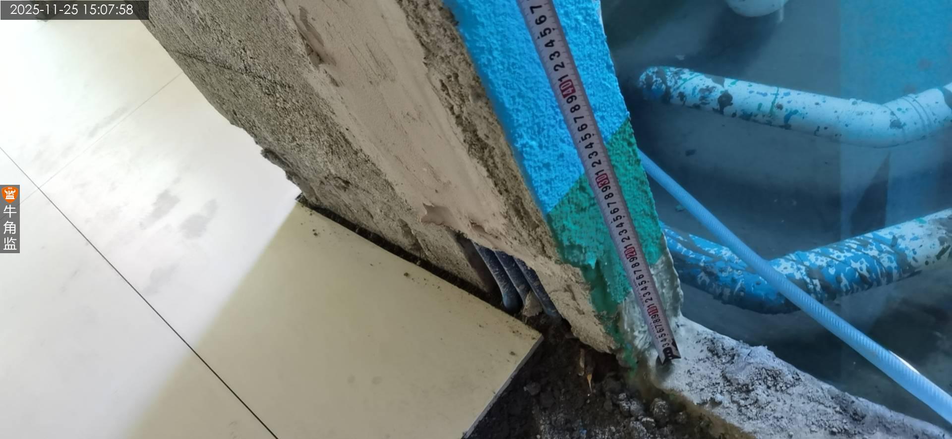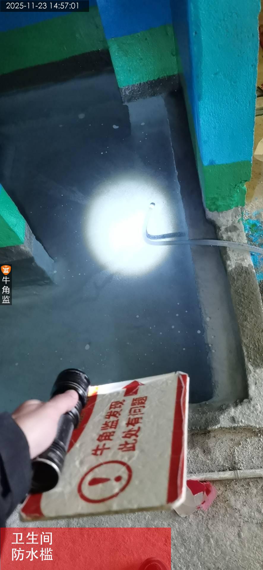 2、卫生间沉箱底部阴角未做圆弧角。后期防水施工容易开裂,渗漏。 ;整改建议:沉箱底部阴角找平时需要做圆弧角倒角处理后再涂刷防水涂料。