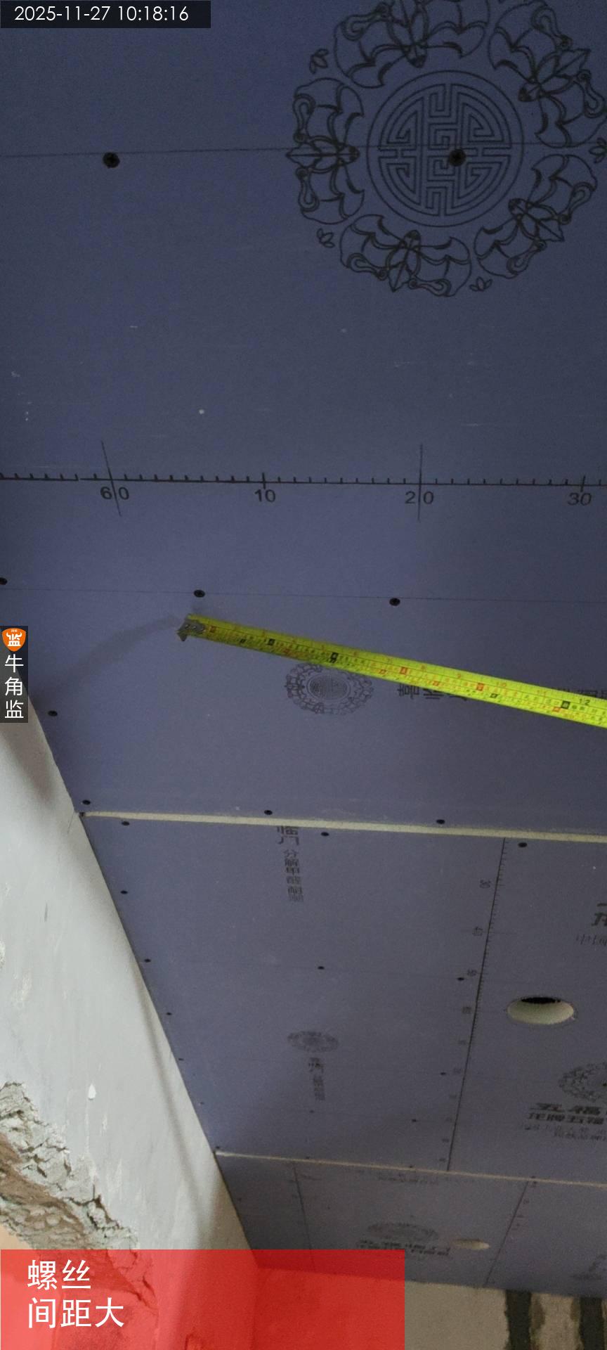 1、玄关天花自攻螺丝局部安装间距大于17cm。 ;整改建议:螺丝间距安装过大,需要加硬螺丝安装。(现场已整改)